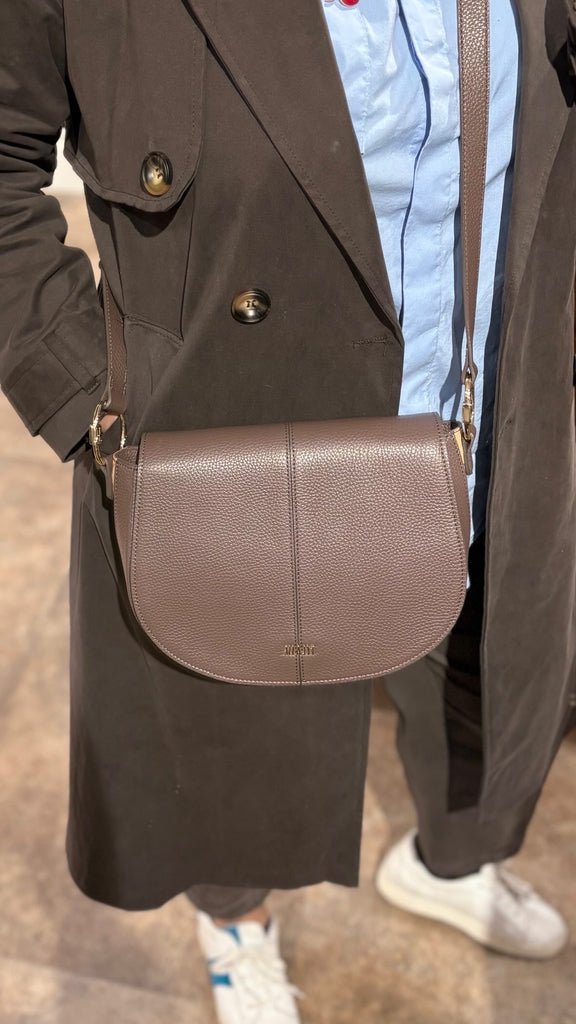 Universe Leather tracolla con patta Taupe Scuro - Alviero Martini